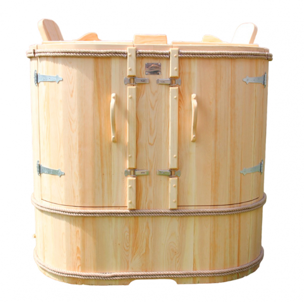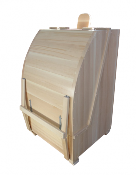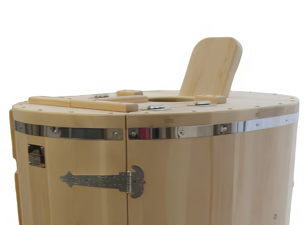 Квадратная фитобочка из кедра - это мини парная, которую можно использовать не только в спа-салонах, но и дома. Толщина стенок составляет 40-45 мм, что позволяет увеличить срок службы изделия. Откидная дверь бочки во время открывания фиксируется внешней подставкой - опорой, которая в закрытом состоянии складывается и не занимает лишнее пространство. Во время парения человек сидит внутри кедровой бочки, а голова находится снаружи. Благодаря этому исключается возможность перегрева. Встроенная ручка из кедра на двери делает эксплуатацию фитобочки более удобной.