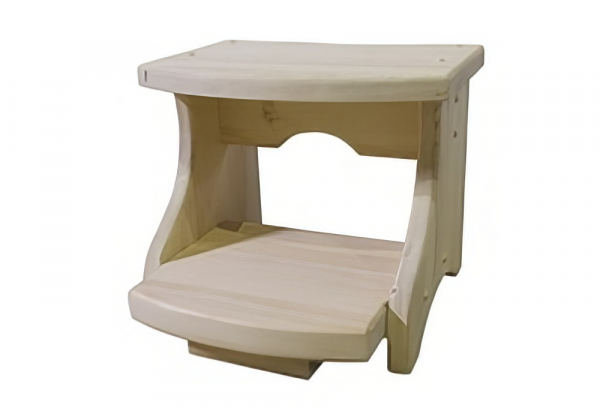 Приступок с двумя ступенями, позволит комфортно заходить в кедровую бочку и выходить из неё.