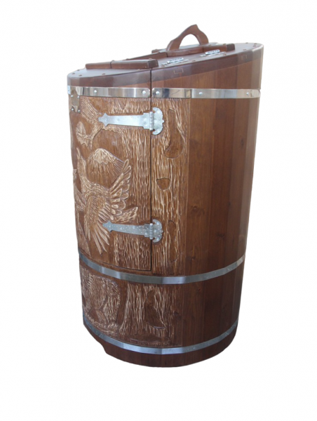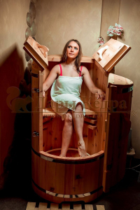 Овальная фитобочка из кедра - это мини парная, которую можно использовать не только в спа-салонах, но и дома. Овальная модель более просторна и удобна в использовании. Толщина стенок составляет 40-45 мм, что позволяет увеличить срок службы изделия. Верхний скос делает положение головы более комфортным и улучшает обзор. Она оборудована откидными створками, дверцей и отверстием для головы. Во время парения человек сидит внутри кедровой бочки, а голова находится снаружи. Благодаря этому исключается возможность перегрева. Подлокотники из кедра, встроенные ручки на створках и двери делают эксплуатацию более удобной.